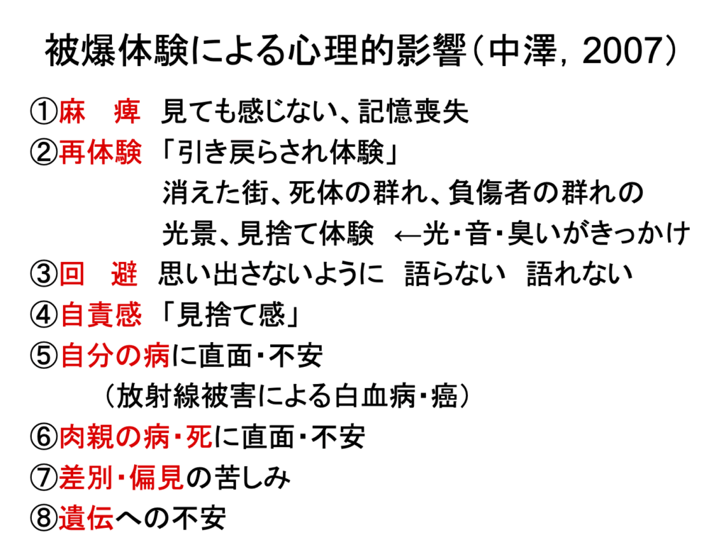 その前にまず、精神科医の中澤正夫氏が挙げた被爆体験の心理的影響をまとめた図をご覧ください。